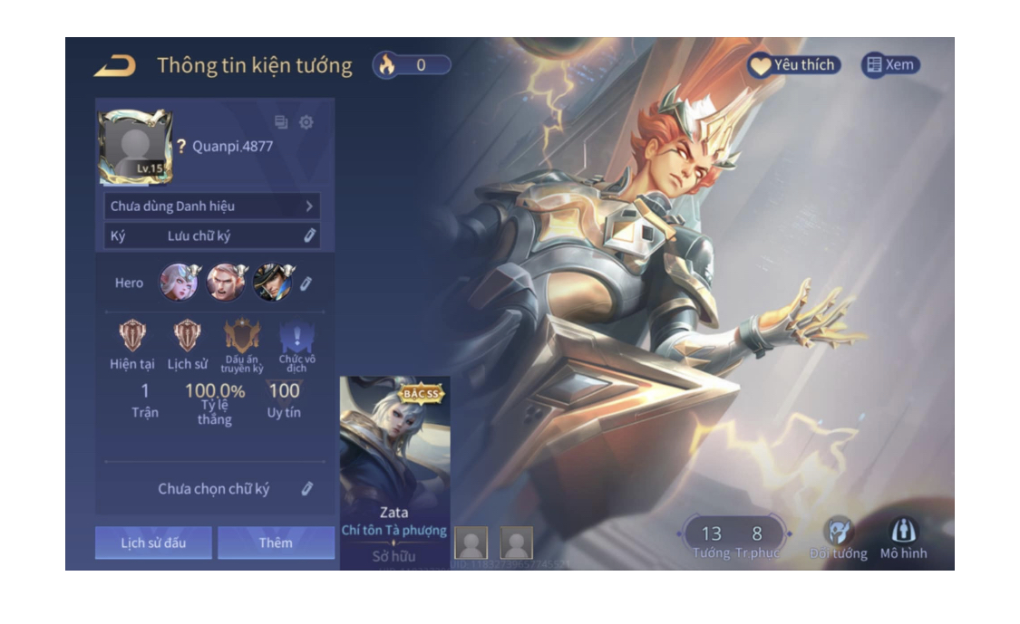 Acc clone có sẵn skin zata chí tôn tà phượng kèm skin lorion quân vương ánh sáng